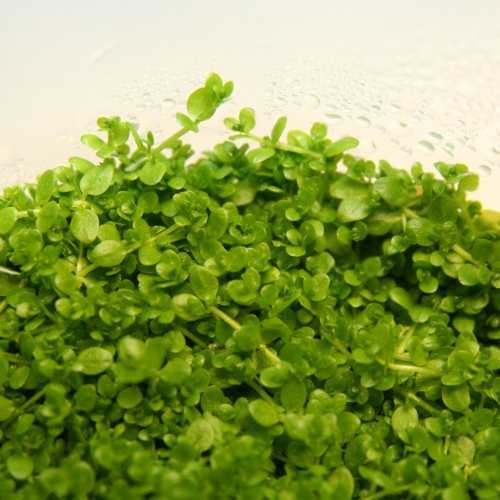 Roślina trawnikowa, bardzo niska, tworzy równy trawnik, listli zielone, drobne, orągłe, pierwszy plan.